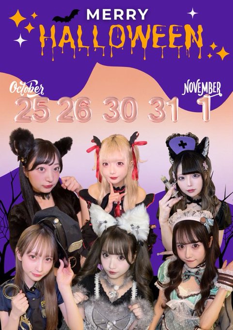 秋葉原・神田 みゃおみゃお 秋葉原 コンカフェ & メイドカフェよる☁️19.22.25.28.31@yoru_myao·10月後半お給仕予定❤︎ 22日19-23 25日19-23.5👻 28日19-23👻 31日20-23👻 ハロウィンイベントあるよー!楽しみ✨✨1114519