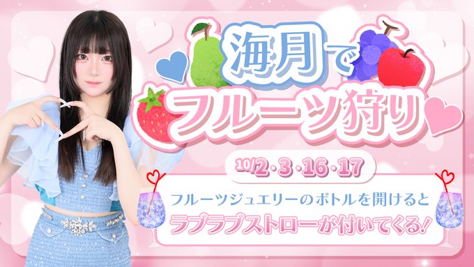 秋葉原・神田 海月 秋葉原コンカフェらぶ@kurage_rabu·10月17日18時〜ラスト!! 今日はフルーツ狩り🍒引用海月🪼-秋葉原コンカフェ-@kurage_concafe·10月16日🍓ーーー🍇ーーー🍎ーーー🍐 海月でフルーツ狩り 10/2・3・16・17 🍓ーーー🍇ーーー🍎ーーー🍐 秋といったら・・・フルーツ狩り! フルーツジュエリーのボトル開栓で ラブラブストローが付いてきます💕1421
