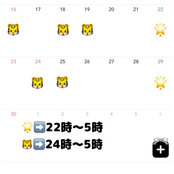 秋葉原・神田 BlackMacaronらいか@rai___x___·11月17日18日⇒20日 0時~5時に変更です🙇♂️引用らいか@rai___x___·11月15日【⠀11月後半お給仕予定🐯🌟 】 時間遅い時多いけど会いに来てくれると嬉しい🥲🥲🥲 ワンチャンこの日行けるかも‼️って日はリプ飛ばしてください🐯⛓️1162