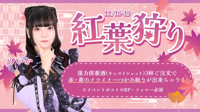 秋葉原・神田 幽遊屋敷〜霊女編〜秋葉原コンカフェ❤️紅葉狩り💛 11/16~19日開催 強力供養酒(キャストショット)3杯ご注文で 赤・黄のクライナーつかみ取りが出来ちゃう❤️ ※受付にてイベントポストのRP&フォロー必須!6685