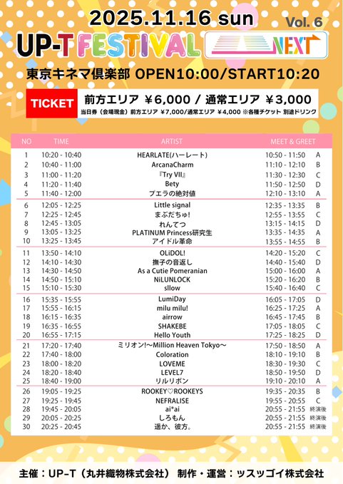 秋葉原・神田 秋葉原トリプルセブン有ゆうな😋❤️【ArcanaCharm】さんがリポストArcanaCharm@ArcanaCharm·♡#あるあむライブスケジュール♡ 本日のあるあむは…!!!! 🔥🔥🔥動員重要ライブ🔥🔥🔥 11/16(日) 嬉しいお知らせあり💌 『UP-T FESTIVAL NEXT Vol.6』 📍 東京キネマ倶楽部 ⏰OPEN 10:00/START 10:20 🎤10:40~11:00 💬11:10~12:10(B) 🎫前方¥6,000/一般 ¥3,000さらに表示9173,671