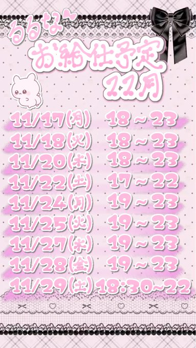 秋葉原・神田 コンカフェ あるこほりっく 秋葉原院こざかなしらす🐟@alco_shirasu·11月の出勤予定🐟 後半もたくさん甘やかしてください^-^ #しらすの日記8623