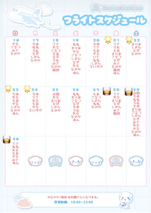 秋葉原・神田 Premium First Class固定✈️Premium First Class✈️【PFC】秋葉原コンカフェ@pfc_cafe·11月後半フライトスケジュール✈️ 🌟21日(金)~24日(月) 文化祭イベント🌟 🥃28日(金)~30日(日) 爆飲みNight🥃 最高のフライトのお手伝いさせてください︎︎☁14948