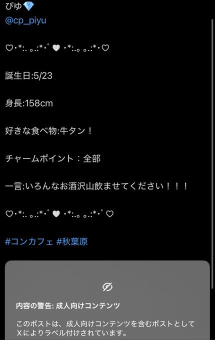 秋葉原・神田 マーメイド 秋葉原コンカフェぽこにゃ【一生非リア担当】@mermaid_poko·いまちゅ内容の警告: 成人向けコンテンツこのポストは、成人向けコンテンツを含むポストとしてXによりラベル付けされています。表示19355