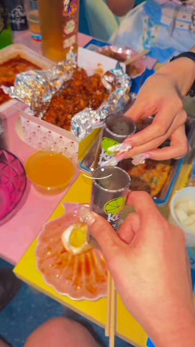 秋葉原・神田 マーメイド 秋葉原コンカフェ🩵真宵れい(まよ)🦋.*˚マーメイド🧜♀️@mayo_mermaid·🩵1114おきゅおわ🩵 👑系列全店終ゼロに慄いている王子 👑まよ自己新記録を叩き出してくれた🇰🇷🍚と🥃と🍾大大大感謝🐧王子 ドリンクショットもぐもぐぽん!ご馳走様でした🫶0:040:060:068500