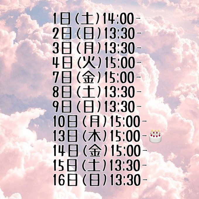 秋葉原・神田 Cherie bellかの【Chérie bell 】@kano_cherie·11時間おはよー! 今日は15時~に変更させてもらってます🙏🏻 15時からいます! お天気良くて暖かいのでぜひお出かけ日和にまってます☀️引用かの【Chérie bell 】@kano_cherie·11月1日11月前半の予定はこんな感じです✍🏻 13日(木)からお誕生日イベントやらせていただきます🎂 今、色々特典を作っているところなので、誕生日イベントのお知らせもチェックしてもらえたら嬉しいです☺️ たくさんお祝い待ってます🤩✨16264