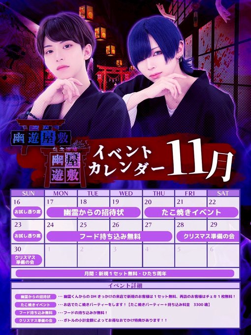 秋葉原・神田 幽遊屋敷 秋葉原 男装・メンズコンカフェ固定凛🥦幽遊屋敷🔰@yuyu_rinkun·18時間11月後半の浮遊予定です 全日16-22時半 来店予定どしどしお待ちしております😭🙌引用凛🥦幽遊屋敷🔰@yuyu_rinkun·11月1日🙂16-22時半 🍁1日〜15日まで終日セット料金0円イベントやってます! 平日ももしかしたら出られるかもなのでご相談ください🙇🏼 暴飲の秋ですよ〜🍻 x.com/yuyu_rinkun/st…17654