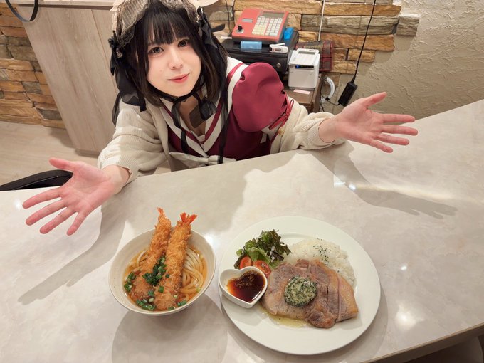 秋葉原・神田 クイーンズコート ~女神の中庭~クイーンズコート ~女神の中庭~|秋葉原メイドカフェ@MegamiTwit·本日ランチ🍽️ 🦐海老天うどん 🐷レアぶーぶソテープレート #秋葉原コンカフェ #女神の中庭 #秋葉原 #メイドカフェ612490