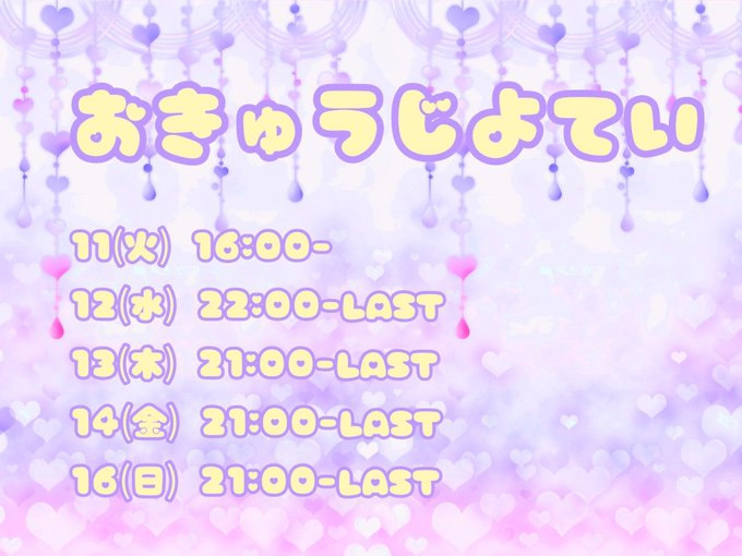 秋葉原・神田 みけねこカフェ秋葉原店固定らず@みけねこカフェ秋葉原@razumikecat·💜今週のおきゅよて💜 今週もほぼ遅番! 14.15はナースイベだよ〜💉💊 らずちは1日目しかいないからね〜4101