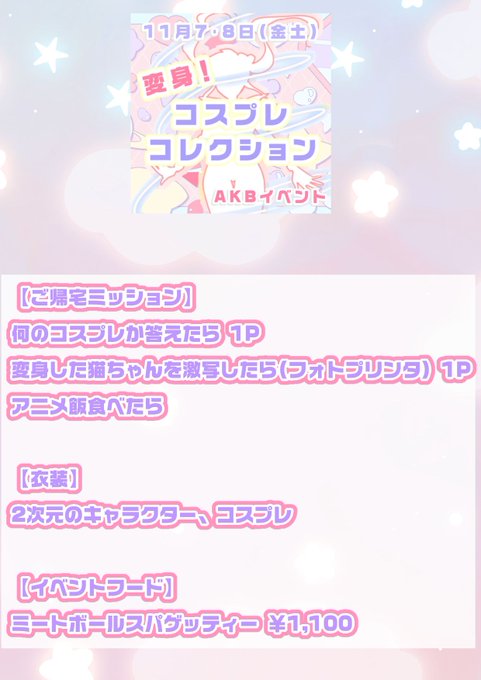 秋葉原・神田 Cherie bell🦋Chérie bellシェリーベル🦋秋葉原コンカフェ@Papillon_akb·🦋11月9日(日)のぱぴよん🦋𓂃 𓈒𓏸 13時🕐 ꕤひな ꕤちゅん ꕤうさ ꕤめあ ꕤすあ ꕤみづき 13時半🕜 ꕤかの 14時🕑 ꕤあいら ꕤしぐれ ꕤゆあ ꕤゆう 18時🕕 ꕤこばと 本日も皆様のご来店心よりお待ちしております♩18458