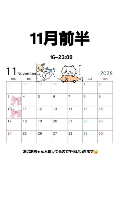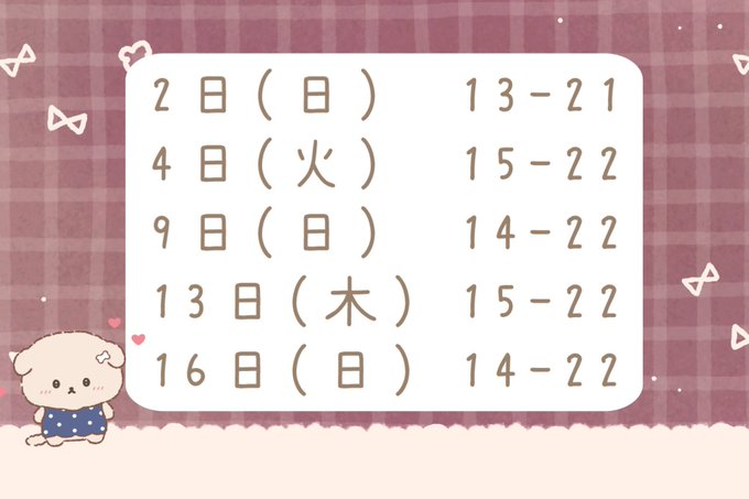 あんず 秋葉原クラプリいる日は固ツイ@cp_anzu___·11月1日┏・・・・━━━━━━━┓ ☆11月おきゅいん予定☆ ┗━━━━━━━・・・・┛ あんずの11月おきゅいん予定💭 @cp_akb 🎀16~23じ いるよん👍🏻 ̖́- #コンカフェ #秋葉原コンカフェ引用あんず 秋葉原クラプリいる日は固ツイ@cp_anzu___·10月6日┏・・・・━━━━━━━┓ ☆10月おきゅいん予定☆ ┗━━━━━━━・・・・┛ あんずの10月おきゅいん予定💭 @cp_akb 🎀16~23じ ♥17~23じ ☺18~23じいるよん👍🏻 ̖́- いない日も一旦相談してね💭 #コンカフェ #秋葉原コンカフェ x.com/cp_anzu___/sta…3384