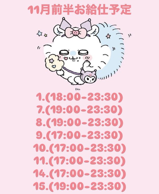 固定すず@cp_suzu_·11月の出勤予定です(^ᴗ͈ˬᴗ͈^) お待ちしてます🎀🎶2506