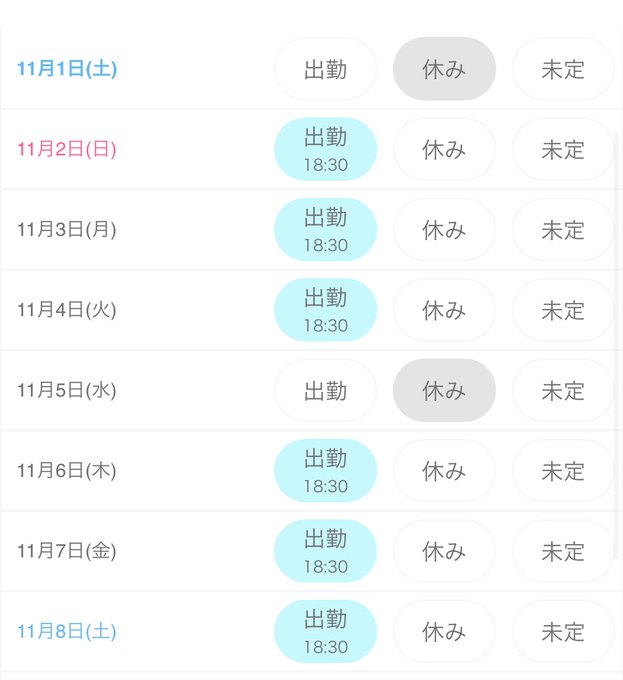 秋葉原・神田 コンカフェ あるこほりっく 秋葉原院こざかなしらす🐟@alco_shirasu·11月前半の出勤予定🐟 #しらすの日記2252