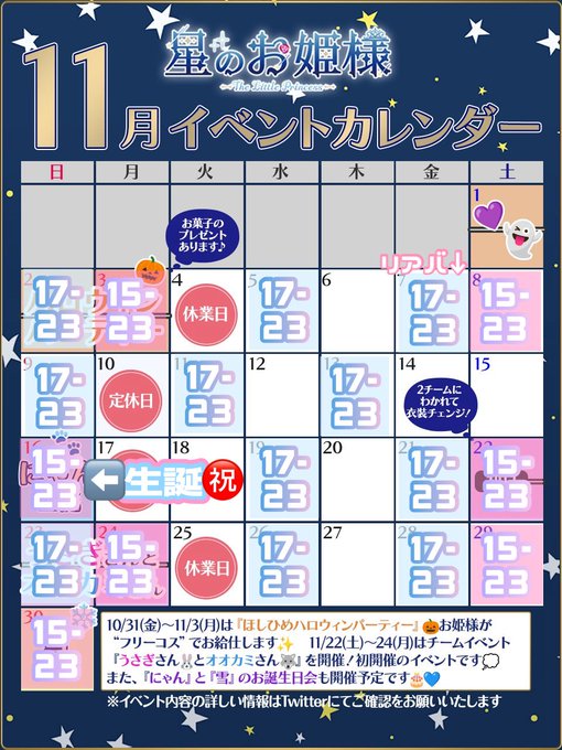 秋葉原・神田 星のお姫様 秋葉原コンカフェ=^にゃん^= 星のお姫様@nyan_hoshihime·11月11日❤︎11月お給仕予定 完全版❤︎ 遅くなりました😵💫 前半も少し変わっています(14(金)がお休みになりました) 16(日)にゃん生誕₍^. .^₎⟆♡ 気合十分なのでよろしくお願いします!🙇🏻♀️ 22(土)〜24(月祝)うさぎとオオカミイベ!私はうさぎさんチーム🐰 30(日)雪生誕❄️ #にゃんちゃんいついるの星のお姫様🌟秋葉原コンカフェ引用=^にゃん^= 星のお姫様@nyan_hoshihime·11月5日【重要】11/16にゃん生誕にゃー🐱詳細公開♡ 大変お待たせしましたᐡ𖦹 ·̫ 𖦹 ᐡ 今年はにゃんらしく猫感(?)出して行こうと思います😼猫カフェ! 分からないことあったら気軽に聞いてください🎶 毎日生誕に向けて準備進めてるよ👍🏻楽しみ! いっぱい会いに来てね❤︎ ALT見て⬇️ #にゃん生誕2025392,432