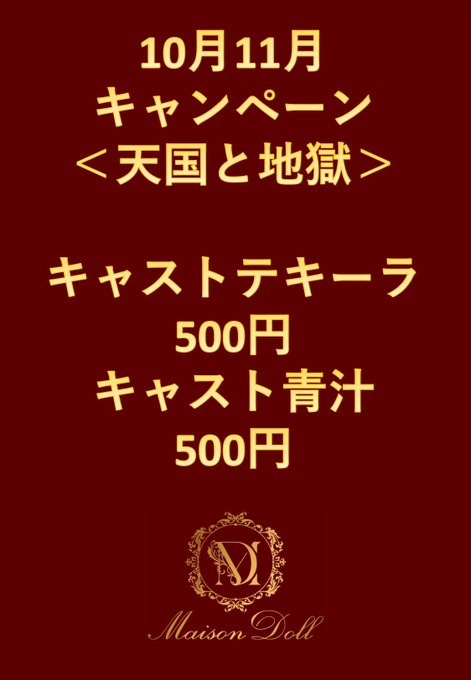 秋葉原・神田 Maison DollめるのあㄘゃԽさんがリポストMaison Doll (メゾンドール)@mezondoru·❤︎ 11月の後半 ❤︎ テキーラ飲み放題💫継続中💫 そして⁉️ キャストショット500円も終盤戦🥺 11月最後に伝説をのこすのは誰なのか⁉️⁉️😆😆 🩷18じ半-23じまで❕ 💛16じ半-22じまで❕ 💜16じ半-23じまで❕ 11月の後半も❗️素敵な出会いがありますように💭✨ #コンカフェ #秋葉原14422