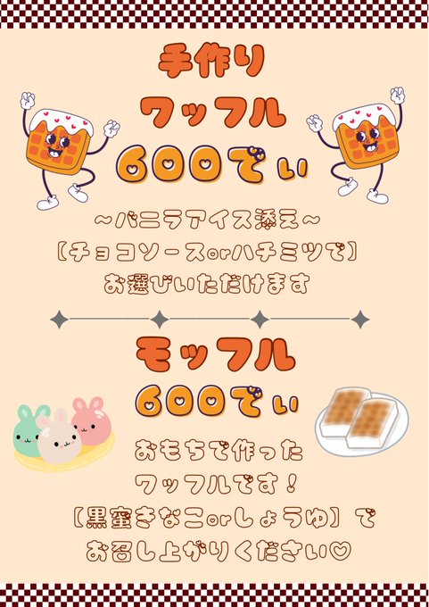秋葉原・神田 NoALil⚓️ NoALil(のありる)【秋葉原のコンカフェ】@NoALil_akiba·【🤍🚢 NoALil 🚢 🤍】 常設フードメニュー改定第4弾 ★ワッフル ・チョコソースorハチミツ ★モッフル(お餅ワッフル) ・黒蜜きなこ or しょうゆ ワッフルは甘いものが 食べたい時に♡ モッフルはしょっぱいものを 食べたい時に♡ ぜひお召し上がりください(っ ॑꒳ ॑c)!1370