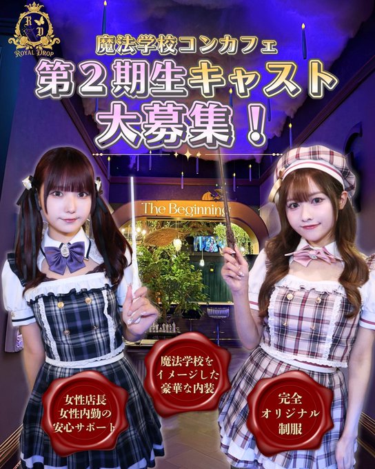 秋葉原・神田 【新規オープン】RoyalDrop 秋葉原コンカフェ💛魔法学校RoyalDrop💛秋葉原コンカフェ@RoyalDrop_maid·秋葉原に魔法学校が本格開校🪄✨ ロイヤルドロップでは第2期生キャストを大募集中💫 豪華な内装×可愛い制服🎀 女性内勤在籍で安心👩💼 経験者はもちろん、未経験・初バイトも大歓迎💖 応募はこちらのリンクから🔗https://lin.ee/ljudfzM #秋葉原 #コンカフェ #コンカフェ求人171