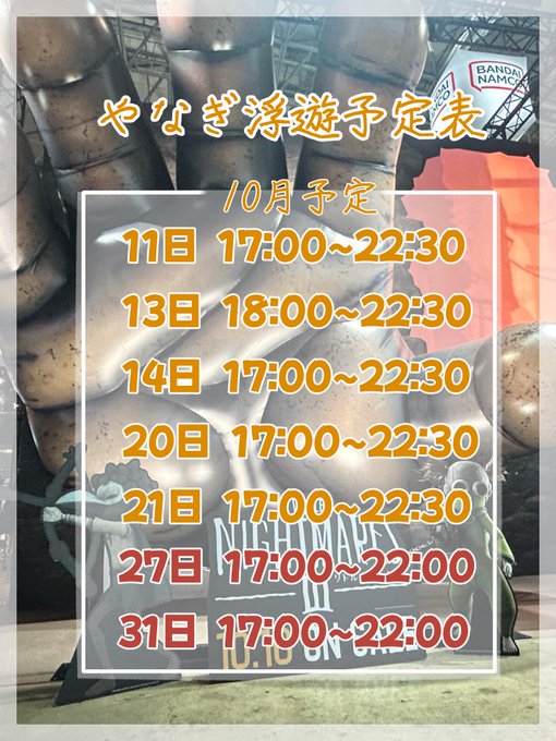 固定やなぎ⛩ 10/31成仏@yuyu_yanagi·⛩10月の予定はこちら👻 ラストの週だけ終わりの時間早いので注意❕ 木金はまだ追加いけます‼️ご検討願う‼️ 成仏までに沢山の人間様に会いたい😭😭490