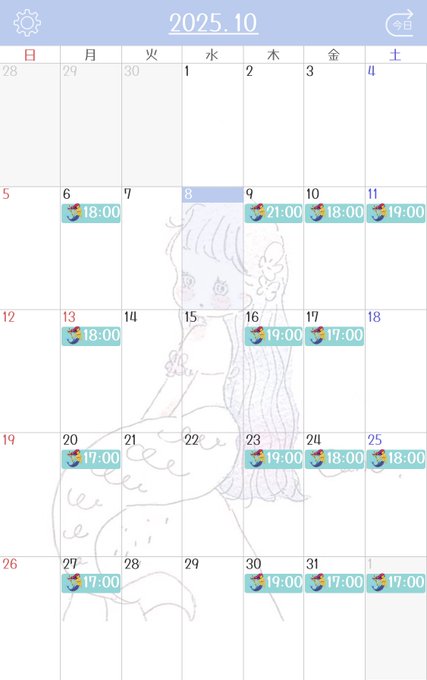 固定🩵真宵れい(まよ)🦋.*˚マーメイド🧜♀️@mayo_mermaid·👻10月まよいん予定🎃 はっぴーはろうぃーーーん❕ 【まよいん時間】 月金土▶︎17:00〜 木▶︎19:00〜 ※今月は結構日によって違う ご確認&ご連絡ください🫶 来店連絡はX、インスタのDMまで^•𖥦•^.ᐟ #まよいん予定122556