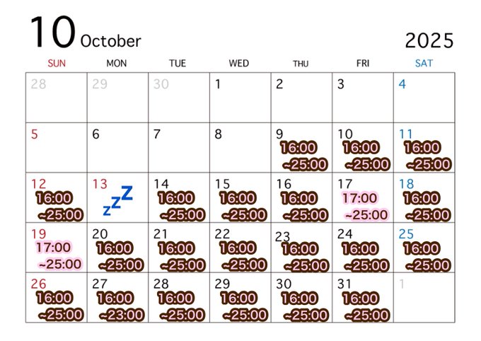 居酒屋の副店長🐝@chanbee0428·🐝2025.10 schedule🐝 7日17-23 9日17-22 12日11-15 13日11-15 15日17-23 #はにーびーはうす435