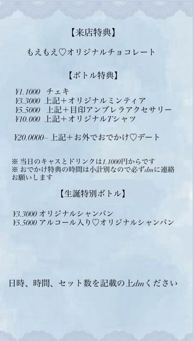 もえ @Andlovely@moe_al__·1時間満枠だったんですけどキャンセル出たのでお約束守れる方であと2枠埋めてくれる人いたら連絡ください😭😭😭😭😭😭🫵🏻引用もえ @Andlovely@moe_al__·9月1日もえお誕生日イベント10/10.10/11.10/12 完全予約制の1セット独占できます.。ƶƵ 各日にちで衣装が違うので、たくさん会える方はたくさん会いたいなー♡㊙️チェキコンプしてくださいᐡ т · т ᐡ オリシャン本数、来店予約、質問dmくださいᐡ т · т ᐡ285