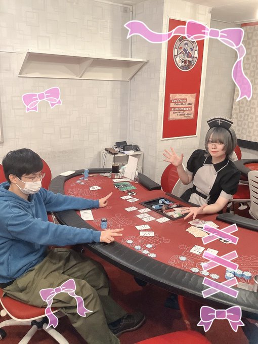 秋葉原・神田 アキバギルドアキバギルド メイドカジノ@AkibaGuild·#こんなディーラー推すしかない ねあ @nea_AG 💉カジノエリア💉 クラップス、ブラックジャック、リングゲーム2卓、プログレッシブポーカー 💘トーナメント💘 『昼下がりのポーカーLong 【昼ポ】』が2卓で進行中♡ レイトレジスト 18:00 参加費さらに表示0:1023325