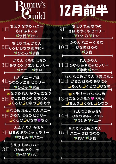 秋葉原・神田 Bunny's Guild バニーズギルド固定Bunny's Guild バニーズギルド|秋葉原コンカフェ@casino_cafe·12月前半バニーちゃん出勤予定🎀 急遽変更もあるので、 詳しくはバニーちゃん達の投稿をチェックしてね📱💕 🏆5日・6日 チャンネルトンネル女王杯 (なつめBirthday🎂) 👑13日 ヒラリーアンBirthday🎂✨ 12月もバニーズギルドで一緒に楽しも🐰💗23386