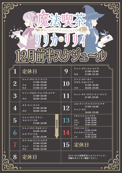 秋葉原・神田 魔法喫茶リリカリリィ魔法喫茶🌙リリカリリィ🥀@lyrica_lily·𓊆 12月前半お給仕予定 𓊇 12/5~6 仮装夜会 ~𝕔𝕠𝕤𝕥𝕦𝕞𝕖𝕤𝕠𝕚𝕣𝕖𝕖 ~ コスプレイベント🪄ྀི 12/24~26 𝐿𝑖𝑙𝑦 𝐶ℎ𝑟𝑖𝑠𝑡𝑚𝑎𝑠꙳☄︎⋆꙳ クリスマスイベント🎄 詳細は各ポストをご確認ください🎀 センセイのご来店、お待ちしております🪄︎︎𓂃⋆꙳ #魔法喫茶リリカリリィ #まほリリ18286