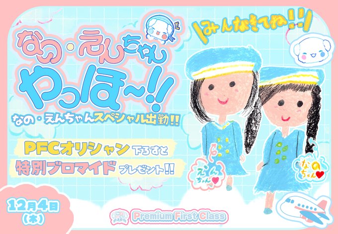 秋葉原・神田 Premium First Class✈️Premium First Class✈️【PFC】秋葉原コンカフェ@pfc_cafe·12月4日(木) / やっほ~!!✨ なの・えんちゃんスペシャル出勤✈️ \ PFCを長年支えてくれていた、なの・えんちゃんが帰ってきた⁉️ 2人と乾杯しながら懐かしい思い出話をしちゃいませんか🍻 さらに… 🩵PFCオリシャン下ろしていただくと特別ブロマイドをプレゼント❣️さらに表示33256