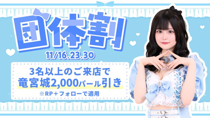 秋葉原・神田 マーメイド 秋葉原コンカフェ固定Mermaid(マーメイド)秋葉原🧜♀️コンカフェ🌊@mermaid_bar·♡・┈┈┈┈┈┈┈┈┈・♡ 団体割 11/16・23・30 ♡・┈┈┈┈┈┈┈┈┈・♡ 日曜日はマーメイドに集合!🧜♀️🫧 3名以上のご入水で 竜宮城2,000パール引き🏯✨ 【適用条件】 イベントポストRP・フォロー画面を受付提示 ワンオーダー必須 #秋葉原 #コンカフェ2513