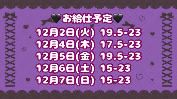 秋葉原・神田 煌幻娘娘固定冬華(とうか)@煌幻娘娘@touka_kgn·おきゅ予定🗓 ⚠️店休日:1日(月)、3日(水)⚠️ 🕵️♀️5日(金)〜7日(日):探偵EV🕵️♀️ 今週も皆勤賞です❕❕❕いつでもお待ちしておりますのでね❕❕❕6180