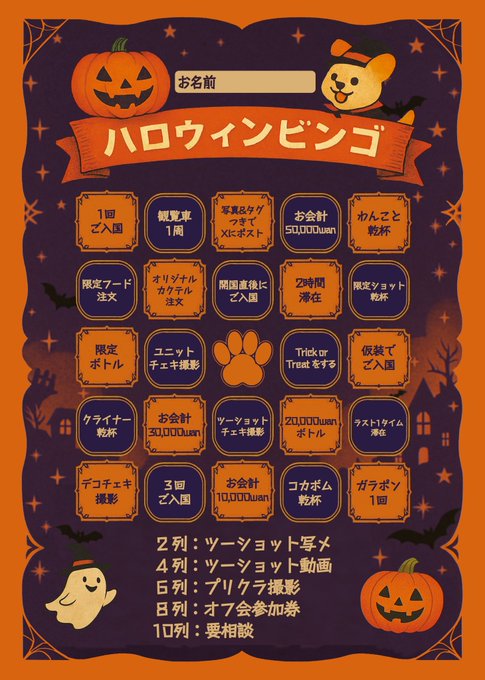 🐶アキバわんわん帝国🐶秋葉原コンカフェ@wan_wan_teikoku·【お知らせ】 わんわん帝国 ハロウィンビンゴ開催🐶❤️ オフ会特典あり❕ 期間 10.24~10.3113213