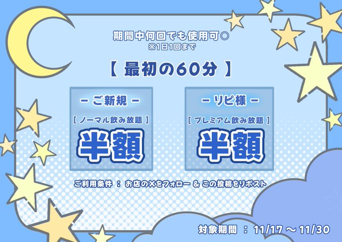 秋葉原・神田 Premium First Classもあ@pfc_moa·11月27日18-23です! 予定ください🙇♀️引用✈️Premium First Class✈️【PFC】秋葉原コンカフェ@pfc_cafe·11月27日11月27日(木) / 超‼️お得な‼️ ご新規パッセンジャーさま割✈️ \ ①公式Xと公式TikTokのフォローで終日セット料金半額 1500マイル☁️ ②さらに❣️上記➕公式ポストRT➕公式TikTok動画の再投稿 終日セット料金1000マイル☁️ ※割引の使用には1000マイル以上のワンオーダーが必須です。さらに表示61,057