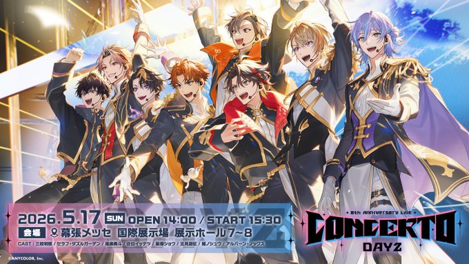 秋葉原・神田 メイドロックカフェ東京ろむ@MAIDROCKCAFE東京@rom2_mrc·3時間まって????ほんとに、、、、、え????いきたい引用正方形のプロフィール画像にじさんじ公式🌈🕒@nijisanji_app·4時間\ #にじフェス2026 / 📣スペシャルステージ情報④ 🔷にじさんじ 8th Anniversary LIVE 「CONCERTO」Day2 日程:2026年5月17日(日) OPEN:14:00 / START:15:30 📍幕張メッセ 国際展示場 展示ホール7~8 🔽出演者 #三枝明那 #セラフ・ダズルガーデン #風楽奏斗 #佐伯イッテツ #星導ショウさらに表示2154