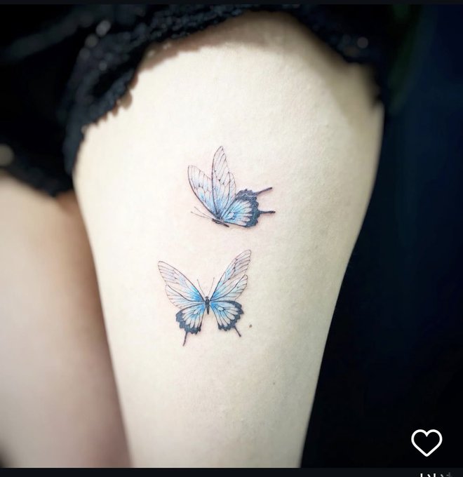 秋葉原・神田 マーメイド 秋葉原コンカフェのえる@デ部@mermaid_noeru·太ももにこーゆー青色の蝶々いれたいんだけど、永遠に彫り師さん選びができないᐡ߹𖥦߹ᐡ誰かこんなデザインとかカラー入れるの得意な彫り師さん知りませんか がちでタトゥーいれたいから情報もとむですよー!11172,062