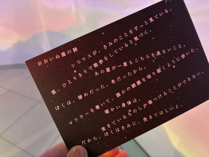 にあ👑トライベッカ@nia_alcm20·大好きな場所に行ってきました🌟 昨日から始まった『詩のプラネタリウム』 神話と詩の力。想いって、言葉って 儚くて尊いって実感しました。 入浴剤とアロマ買ったよ☺️19396
