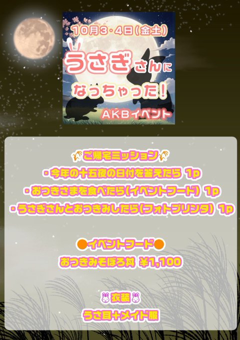 みるむ@みけねこカフェ秋葉原店@mirumumikecat·7時間とーーーーっくに屋根裏 うさぎチャンお月見イベント またたびチェキ ありがとうございましたん🎀💫 久しぶりにお会いできたり、2回目ましてだったり嬉しかったし、うさぎ褒められてニコニコでした🐰⟡.* つぎは来週〜𐔌՞ . .՞ 𐦯💭引用みるむ@みけねこカフェ秋葉原店@mirumumikecat·10月3日本日21時から! うさぎちゃんイベント🐰❤︎ 可愛いうさぎちゃんになっちゃうんだから❕寂しくさせないでよね❕❤️🩹 イベントフードも召し上がれ🐇 ִֶָ ࣪ 𑊢 #またたび #お給仕 #屋根裏 #鯖缶 #メイドカフェ #秋葉原16166