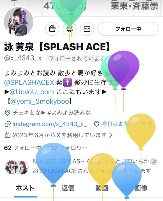 秋葉原・神田 みけねこカフェ秋葉原店夜@みけねこカフェ秋葉原さんがリポスト詠 黄泉【SPLASH ACE】@x_4343_x·7時間🥚➡️🐣➡️🐥➡️🍳 風船とんだ‼️今年もなんとかレベルアップしました‼️‼️🐣 勝手に取る歳だけでなく精神もレベル上げていきたい所存 まだまだいっぱいいっぱいです 大人になるぞ ぜひおめでとうは23日、四谷Lotusで‼️😤‼️直接お礼言わせてくれ😤😤😤‼️ 引用元でまってます‼️‼️⬇️引用SPLASH ACE《Official》@SPLASHACEX·12月10日❤️💜重要LIVE🩵🩷 12/23(火)📍四谷LOTUS 「SPLASH ACE 詠 黄泉生誕祭」 Open 16:00/Start 17:30 🎤タイテお待ちください 📸終演後物販20:10〜21:30 🉐 #SPLASHACE 入場特典/詠 黄泉生誕衣装ブロマイド 🌸料金(+1D) 予約¥2500/当日¥3000 🎫受付 https://tiget.net/events/450841 ▶出演者(敬称略) SPLASH ACE13744798
