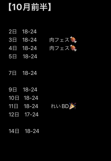 ふらねちゃんです@cp_furane_·10月前半の予定です 4日、14日おやすみです 後半はまた載せます1201,065