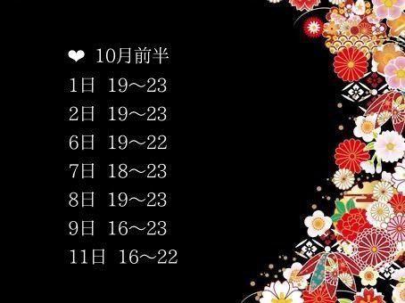 咲-サク-@Luvme_saku39·〖10月前半お給仕予定〗 4日 17-23 10日 17-23 11日 17-23 14日 17-23 すべてラボ199
