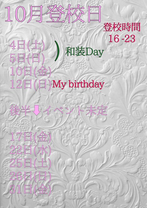 固定ろん10ガツ12ニチ@ronron__da·10月の登校予定だしました〜 今月は20のお誕生日なのでお祝い来て貰えるの待ってますт т お約束や質問等(システムとか)はDMまで連絡してください🫶🏻︎ 当日はちょっとしたプレゼントするので来た方が得かも、? 特典に関して追加のやつを作ったのでALT見てもらえるとありがたいです😭9301