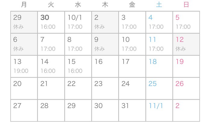 固定🩻ろく💉₆₆₆@あるこほりっく@alco_roku·🧠あるこほりっく10月シフト🧠 ご来院予約はDMまで📨 🏥@alcoholic_akiba3216