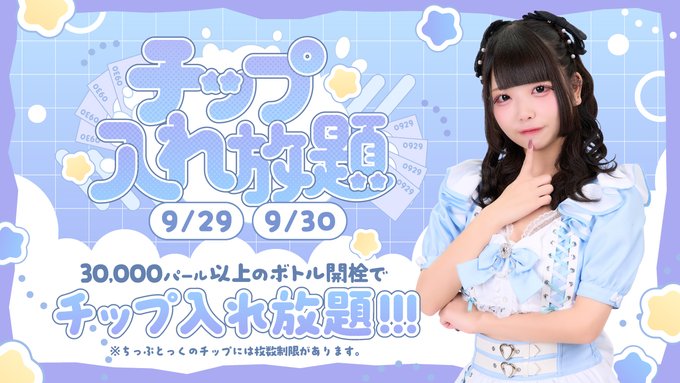 はりゅ@まーめいど㌠@mermaid_haryu·1時間チップ入れ放題らしい💦引用Mermaid(マーメイド)秋葉原🧜♀️コンカフェ🌊@mermaid_bar·7時間。゚・☆・゚。。゚・☆・゚。。゚・☆・゚。 \\\ チップ入れ放題 /// 9/29・30開催! 。゚・☆・゚。。゚・☆・゚。。゚・☆・゚。 30,000パール以上のボトルを開けると チップ入れ放題🌠 ※該当のボトルを開栓したお客様のみ #秋葉原 #コンカフェ #コンカフェ営業3310