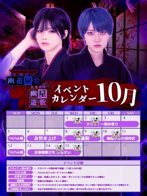にぃと@幽遊屋敷@yuyu_neet__·10月の予定だよー❕ なんと、人生初の生誕イベントをやらせていただ行くことになりました👻 いつも会いに来てくれる人間様も久々な人間様もはじめましての人間様も ぜひ祝いに来て欲しいですや❗️(^_ ̫ _^)3111,006