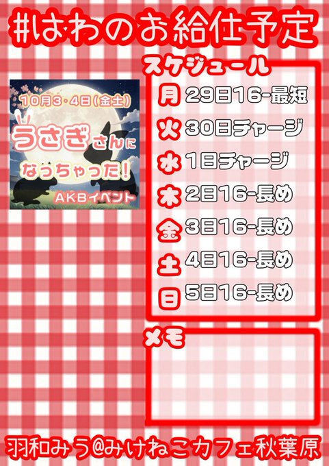 羽和みう@みけねこカフェ秋葉原@miu2mikeneko·#はわのお給仕予定 うさぎとくまは得意分野です🐰🐻 https://cheerz.cz/p/1996934 #みけねこカフェ #またたび #お給仕 #屋根裏 #鯖缶 #おはわのみうちゃん #CHEERZ110413