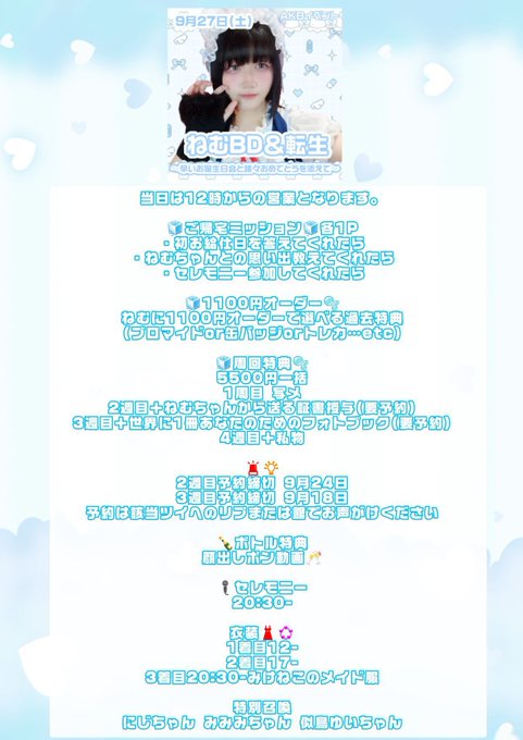 ねむ@みけねこカフェ秋葉原さんがリポストのの@みけねこカフェ秋葉原@nonomikecat·19時間屋根裏してます!ねむちBD&転生式ありがとうございました໒꒱ ののにも優しくしていただき本当に感謝ですありがとうございますㅠㅠ🙏🏻 ねむちにはたくさんお世話になりました、ほんとにかわいくて優しくて気が利いておしゃれさんでオタク心もわかっててとにかく魅力的な先輩にゃんこ、、⬇️引用のの@みけねこカフェ秋葉原@nonomikecat·9月27日꒰ঌ🌐 ねむち BD & 転生 🌐໒꒱ だいすきなねむちのらすと個人イベㅠㅠ💭 やさしいおもしろいかわいい大天才ねむち、、 みんな後悔ないようにたくさんおめでとうと ありがとうしようねえㅠㅠ👍🏻 ののは15時- ⛄️でお手伝いしますノ https://cheerz.cz/p/1996761 #コンカフェ #メイドカフェ #秋葉原3119881