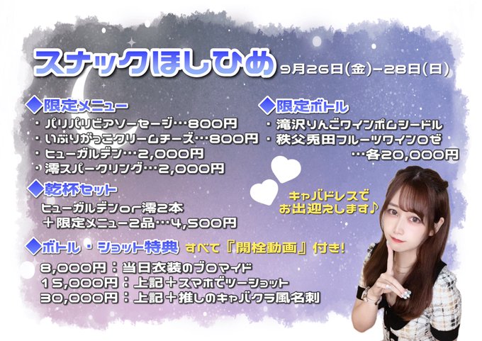 ちよ@chiyo_hoshihime·2時間本日おります✨ 夕方ひまひまひまですт ̫ тお助け待っております❤️🩹引用星のお姫様🌟秋葉原コンカフェ@hoshihime_akiba·9月20日🌟お知らせ🌟 9/26(金)~28(日)に 『スナック #ほしひめ 』を開催します🥂💙 お姫様たちが“キャバドレス”でお給仕! “キャバクラ風名刺”がGETできる特典もあります✨ ぜひお姫様たちとお楽しみください🙌🏻 パイロット様の不時着、お待ちしております🌹 #星のお姫様 #秋葉原コンカフェ x.com/hoshihime_akib…3120