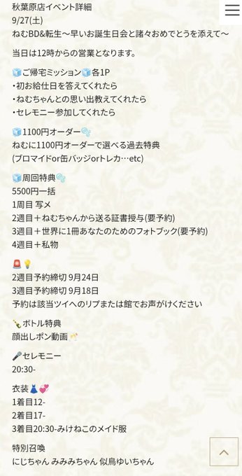 夜@みけねこカフェ秋葉原さんがリポストねむ@みけねこカフェ秋葉原@nemumikecat·ついにきましたねむちゃん最終回 12-らすと 最後までよろしくお願いします https://cheerz.cz/p/1996757 #CHEERZ #またたび #お給仕 #メイド喫茶 #コンカフェ #メイドカフェ #秋葉原 #みけねこカフェ1129841