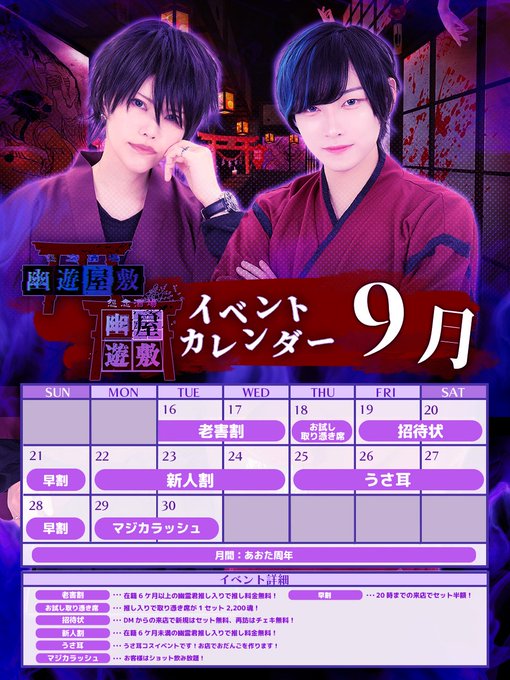 しまっぽ🏝幽遊屋敷@yuyu_shima_·9月27日今日遅れるかもしかしたら出勤出来ないので行くよ!って方がいたら連絡下さい絶対に出勤します…!引用しまっぽ🏝幽遊屋敷@yuyu_shima_·9月18日👻9月残り浮遊日👻 お待ちしてます!!!!! #男装 #男装喫茶 #男装カフェ #コンカフェ #中性 #秋葉原 #アキバ #メンコン14746
