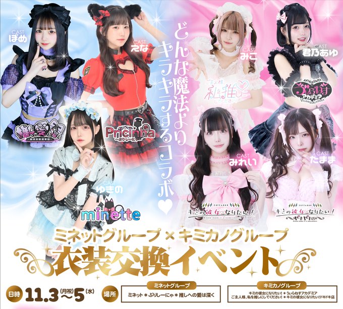 うい@minette_ui·9月26日着れるの⁉️たのしみ⁉️引用ミネット🐈秋葉原コンカフェ🎀@minette_akiba·9月26日˗ˏˋ 🎀 衣装交換イベント 🎀 ˎˊ˗ ミネットグループXキミカノグループ ꒰ ෆ 期間ෆ:11/03(祝月)〜11/05(水) ꒱ 日替わりで衣装が変わる、とびきりかわいい3日間…!?🪞💭 𓂃 𓈒𓏸いつもと違う姿を、ぜひ見に来てね♡⃛ ̖́- #ミネカノコラボ #ミネットグループ #キミカノグループ14366